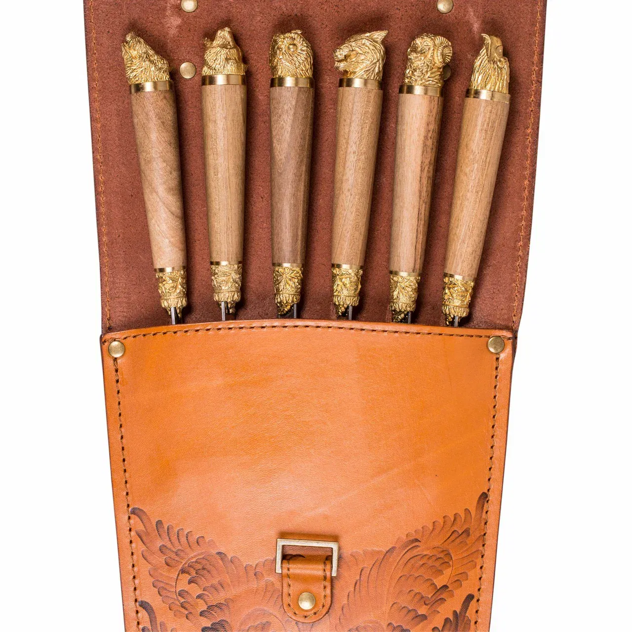 Подробнее: Шампура подарочные в колчане из натуральной кожи "Звери"