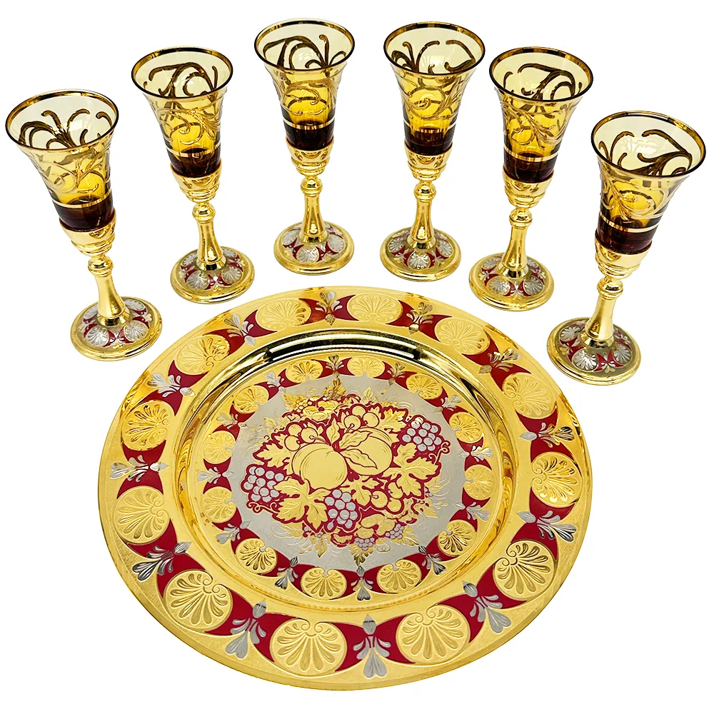 Если вы выбираете подарок для шефа, то изысканный набор стопок - беспроигрышный вариант. Он выполнен в стиле Златоустовской гравюры и выглядит просто роскошно. В комплект входят 6 стопок, тарелка и подарочный футляр. Тонкая ручная работа, настоящее золото, презентабельность - все те качества, благодаря которым изделия Златоуст так ценятся в России.