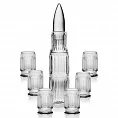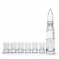 Графин набора для крепких алкогольных напитков стилизован под боевой патрон, а стопки – под оружейные гильзы. Открытые поверхности демонстрируют чистоту и прозрачность хрусталя. Такой набор может стать прекрасным подарком для защитников и победителей, для тех, чья деятельность связана с армией или воинской службой.