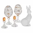 Этот набор — не просто подарок, а материализованный свет пасхального чуда. Два хрустальных яйца, чистых как утренняя роса на рассвете Христова Воскресения, и подсвечник-ангел, поймавший пламя в гранях льда. Каждая грань поет гимн весне, преломляя свет в радужных бликах, словно солнечный зайчик на церковной фреске.