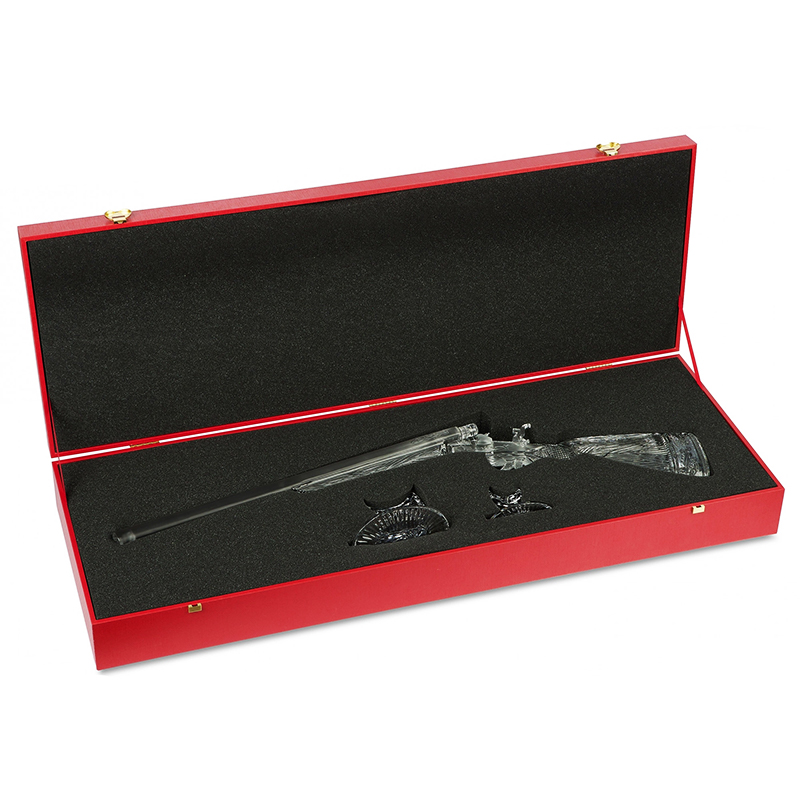 Хрустальное ружье, в котором филигранно переданы особенности реальных охотничьих атрибутов, создано для того, чтобы удивить и порадовать истинного ценителя традиций и правил охоты. Приклад украшен неглубокими алмазными гранями, с потрясающей точностью имитирующими текстуру натурального дерева. Этот аксессуар станет великолепным тематическим подарком для мужчины.