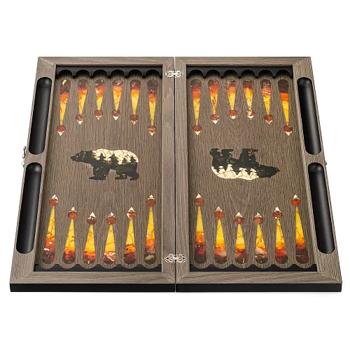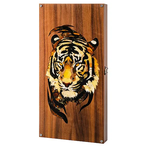 Нарды из мореного дуба и янтаря "Царь зверей"