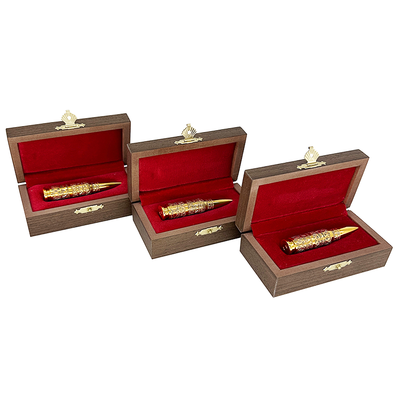 Изделие выполнено в технике Златоустовской гравюры на металле. Токарные работы, рисовка кистью, гравировка иглой по лаку, травление, гравировка резцом, полировка, никелирование, золочение.
