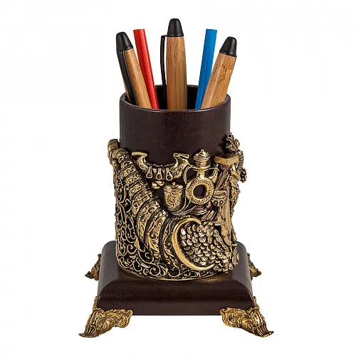 Этот письменный набор станет не только практичным аксессуаром для рабочего стола, но и изысканным подарком, символизирующим статус, вкус и уважение к традициям. Он идеально подойдет для ценителей роскоши, истории и искусства.