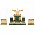 Письменный прибор с часами и отделениями для канцелярских принадлежностей, выполненный в едином стиле.