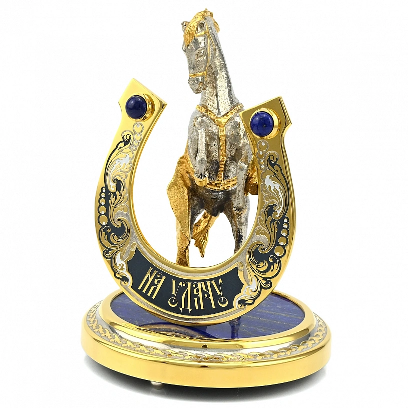 Сувенир "Лошадь с подковой. На удачу" лазурит