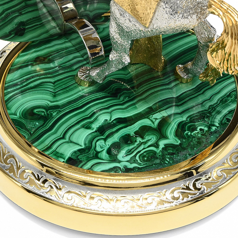 латунь, никель, золото, малахит