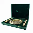 Изделие выполнено в технике Златоустовской гравюры на металле. Токарные работы, рисовка кистью, гравировка иглой по лаку, травление, гравировка резцом, полировка, никелирование, золочение.