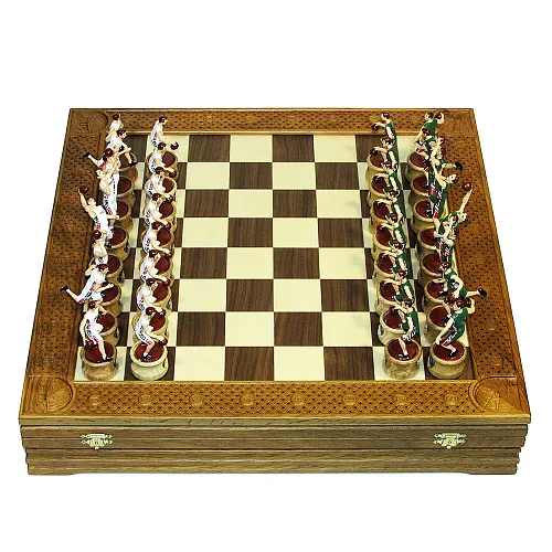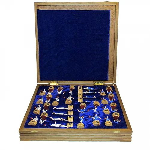 В чем ценность набора? Доска выполнена из мореного дуба - материала, который способен служить десятилетиями без малейших дефектов. Фигурки изготовлены методом литья и чернения из олова.