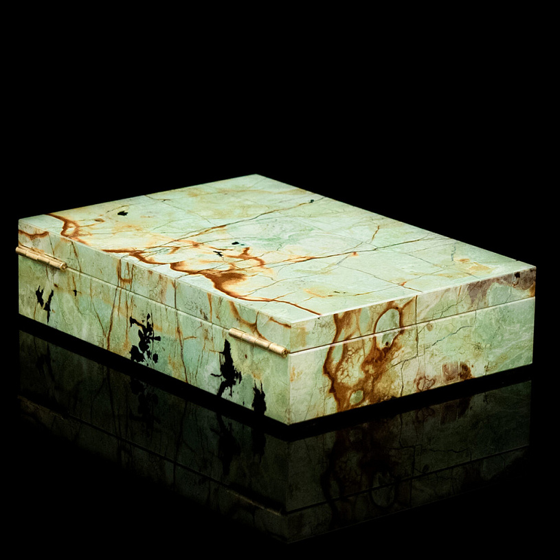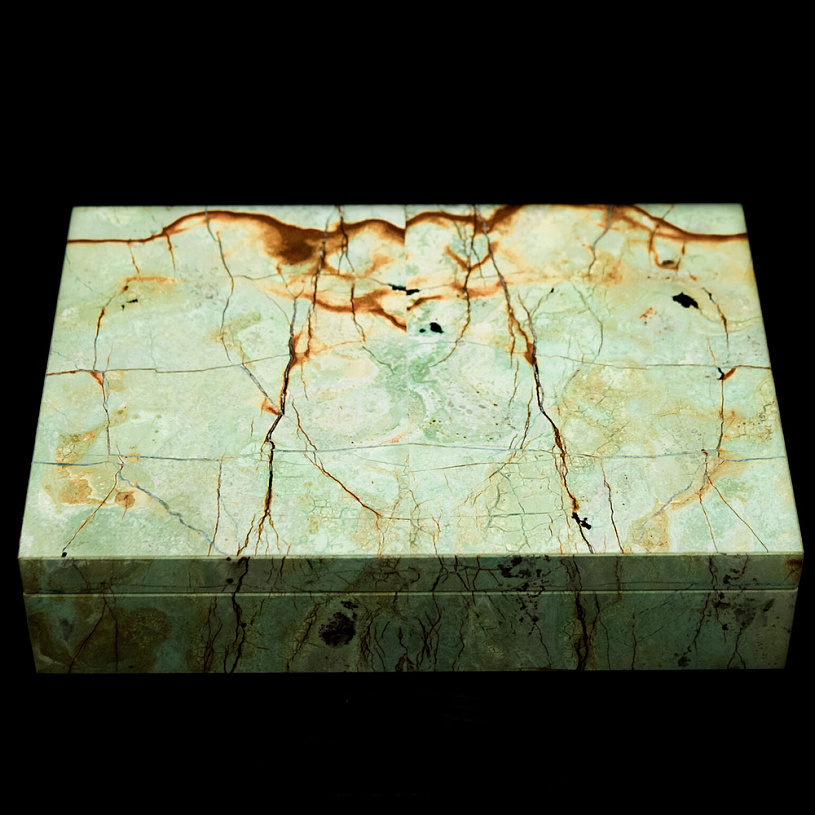 Уникальная каменная шкатулка для сигар 100% ручной работы из иранской бирюзы. Основа шкатулки — базальт черный.