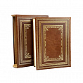 Уникальное репринтное издание, переплетено вручную из высококачественной кожи растительного дубления производства Италии. Окрашенный в тон переплетного материала обрез. Классическая стилистика переплета, с сочетанием блинтового и золотого тиснения. Высококачественная дизайнерская бумага. Дублюра. Кожаный подарочный футляр.