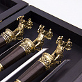 с навершиями в виде фигурок лошади а в деревянном кейсе.