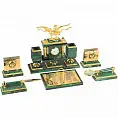 Этот письменный набор станет не только практичным аксессуаром для рабочего стола, но и изысканным подарком, символизирующим статус, вкус и уважение к традициям. Он идеально подойдет для ценителей роскоши, истории и искусства.