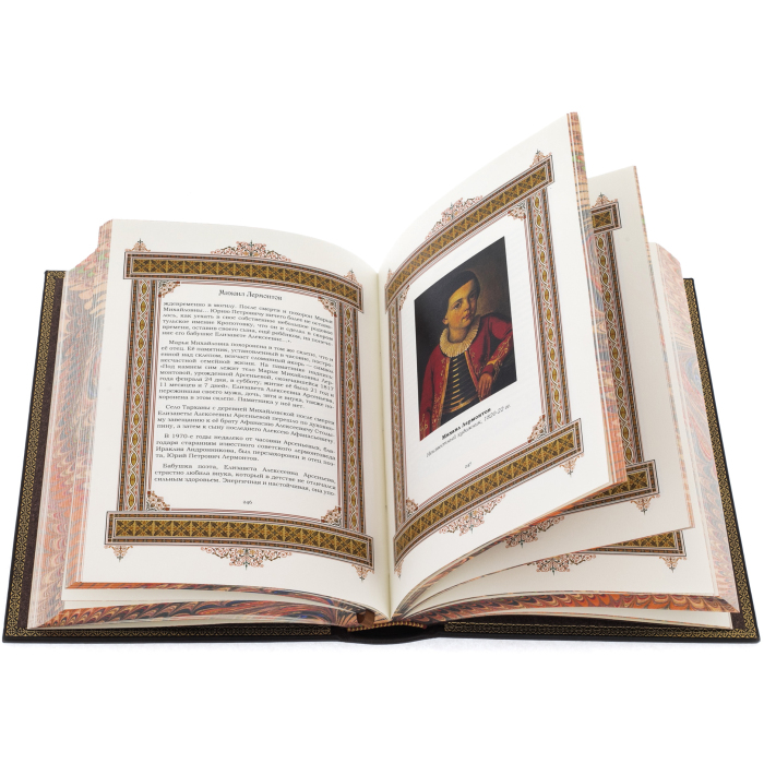 Подарочное издание представлено в цельнокожаном переплете ручной работы. Дизайн включает в себя сочетание блинтового и золотого тиснения, выполненных на высококачественной натуральной коже. Крашеный в тон переплетного материала обрез. Форзацы оформлены дублюрами. Иллюстрированный книжный блок выполнен на высококачественной мелованной бумаге. Ляссе.