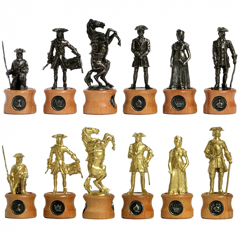 Шахматы "Полтавское сражение" - уникальный набор из натурального дерева и олова, созданный с ювелирной тонкостью и мастерством. Каждая фигура изготовлена вручную.