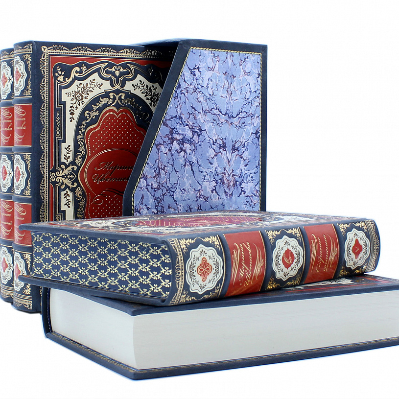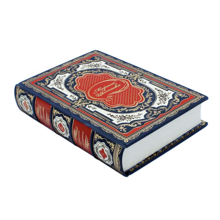 Ручной кожаный переплет в историческом французском стиле, много-цветовое тиснение, разработанный нами эксклюзивный дизайн оформления. Подарочный короб с дизайнерской бумагой в декоре. Страницы книги тонированы, что оберегает их и придаёт книге великолепную, роскошную эстетику и притягательный вид.