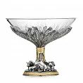 Хрустальная ваза на серебряном основании предназначается для подачи конфет. Тиражное коллекционное изделие выполнено по спецзаказу. Работа над вазой проводилась в течение трех месяцев, силами десяти специалистов мастерской.