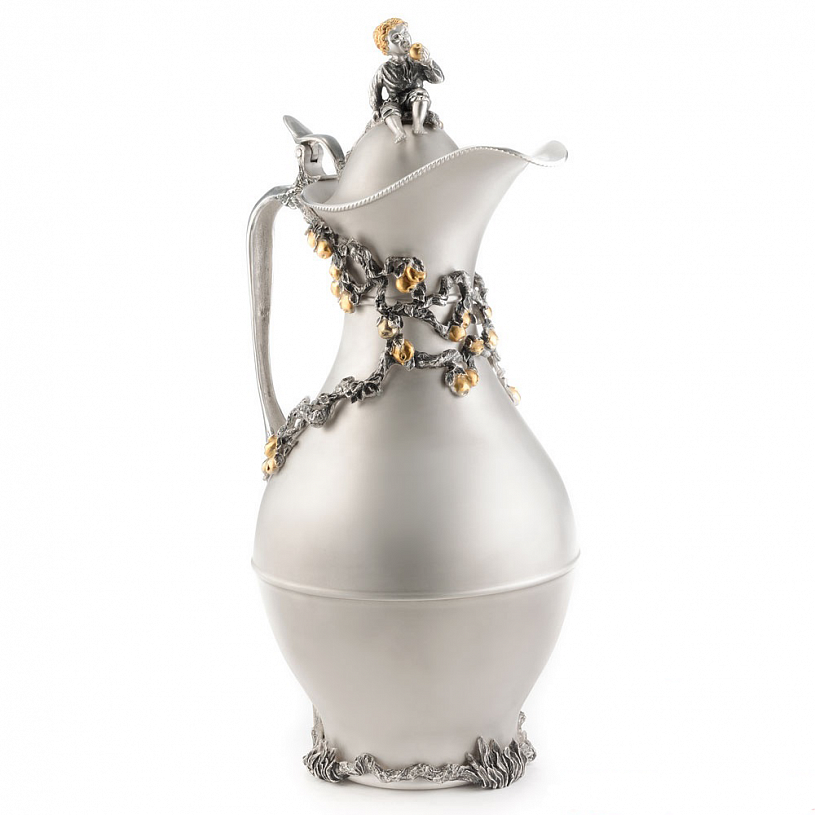 Эксклюзивный кувшин для хранения воды сделан полностью вручную в стиле “старых” мастеров московской ювелирной школы. Объем — 1, 7 литра.