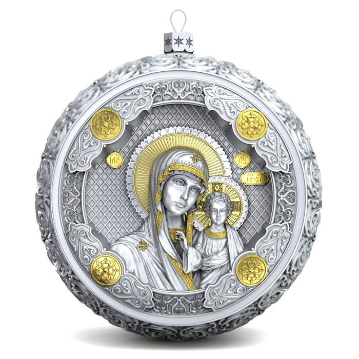 Серебряный елочный шар "Казанская Богородица"