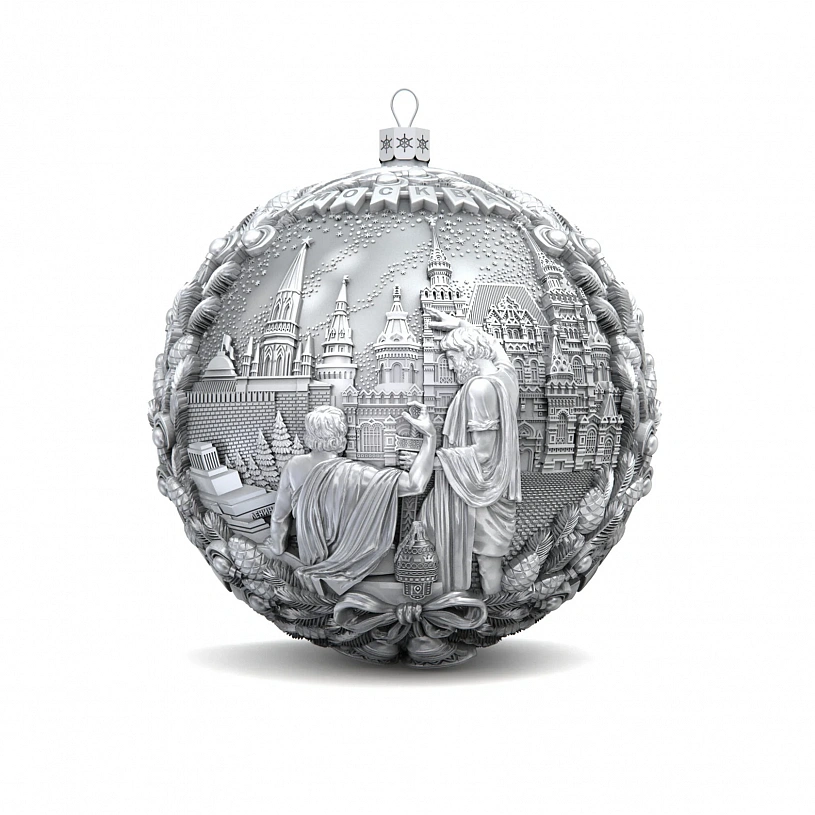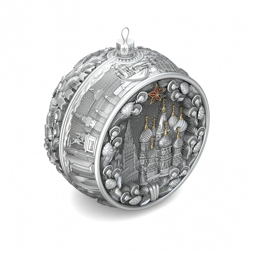 Серебряный елочный шар "Москва"