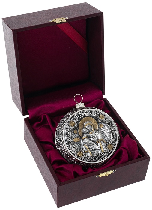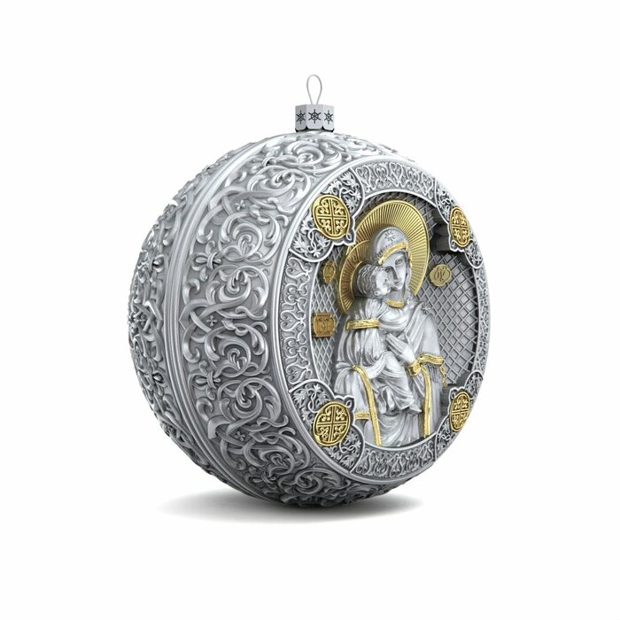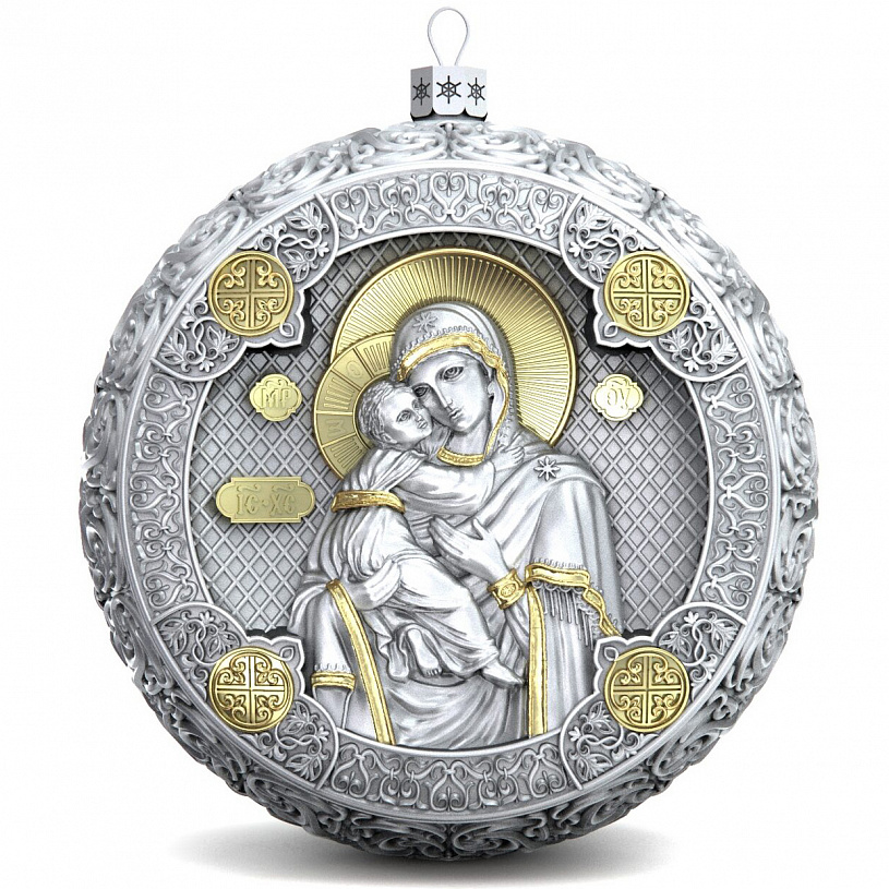Серебряный елочный шар "Владимирская Богородица"