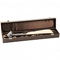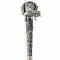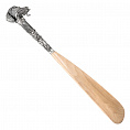 Ручка лопатки выполнена из серебра с навершием в виде собаки, держащей в пасти пойманную утку. Вдоль ручки расположена детально проработанная двухсторонняя композиция со сценками охоты. Сама ложка выполнена из граба. Цвет дерева, на заказ, может быть подобран под интерьер коридора.