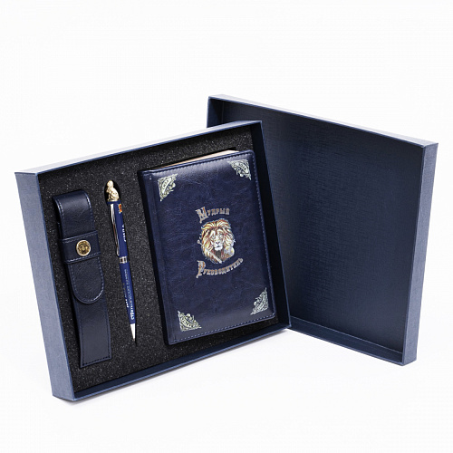 Блокнот с ручкой в футляре "Лев"