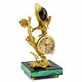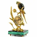 Эти часы — ожившая картина: два попугая сидят на ветвях литой бронзы, словно сошли с полотна Гогена. Изумрудные переливы малахита, его причудливые узоры («павлиний глаз») создают иллюзию живых птиц, замерших в момент щебета.