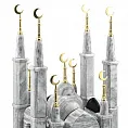 Эти часы — застывший отзвук азанa, воплощённый в благородном мраморе. Архитектура мечети с резными арками, тонкими колоннами и куполом, увенчанным полумесяцем, переносит дух Востока в ваш интерьер. Каждый изгиб — отражение вековой гармонии исламского зодчества, где геометрия становится богословием в камне.