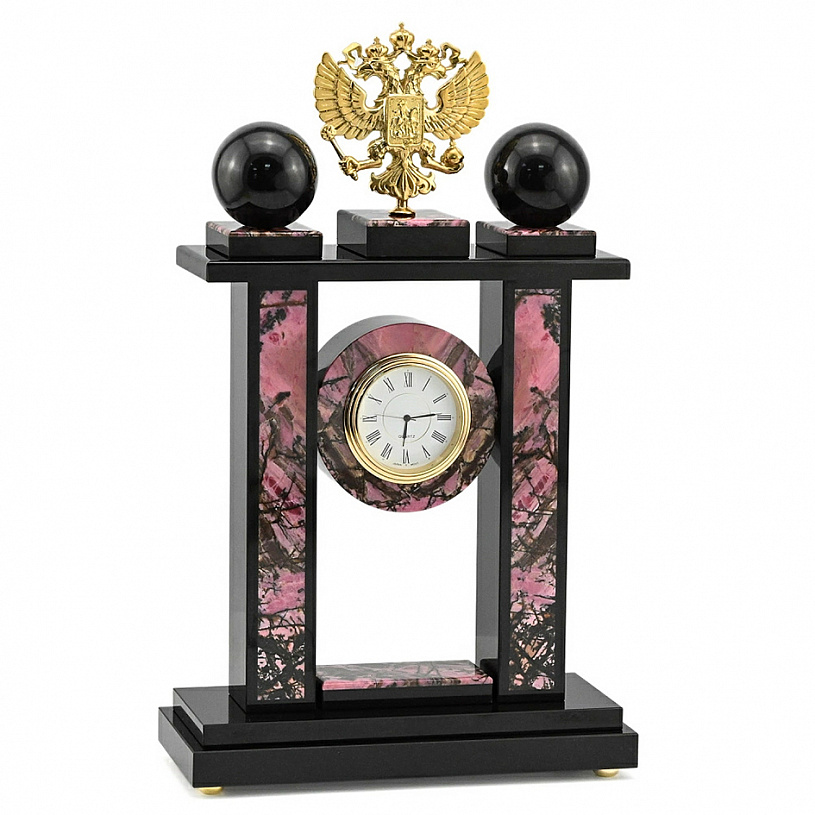 Часы интерьерные из родонита "Герб России"