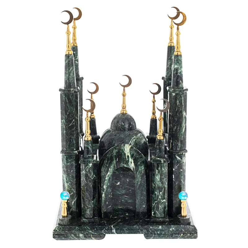 Эти часы — застывший отзвук азанa, воплощённый в благородном мраморе. Архитектура мечети с резными арками, тонкими колоннами и куполом, увенчанным полумесяцем, переносит дух Востока в ваш интерьер. Каждый изгиб — отражение вековой гармонии исламского зодчества, где геометрия становится богословием в камне.