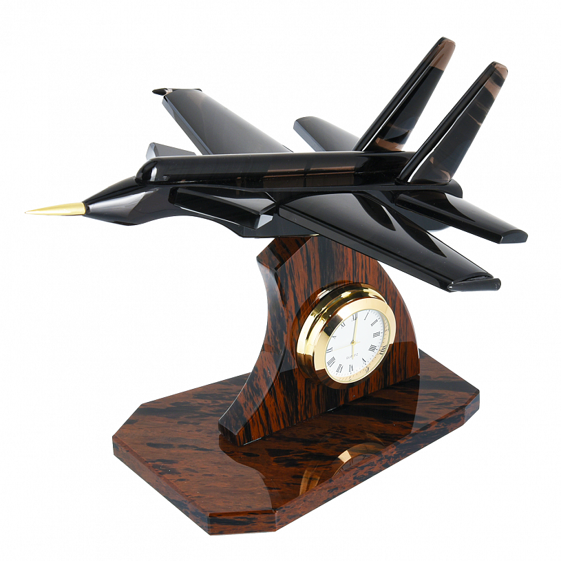 Часы из обсидиана "Самолет истребитель"