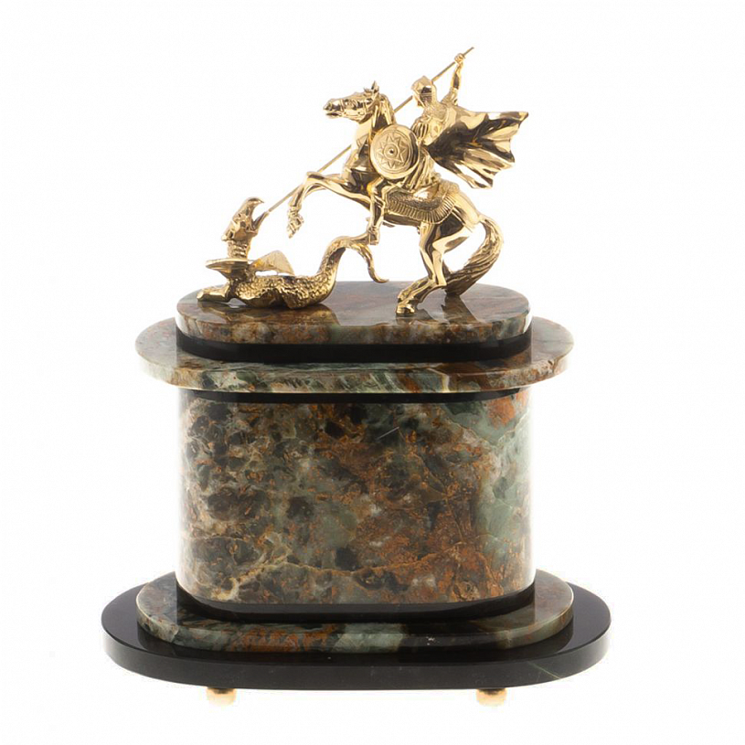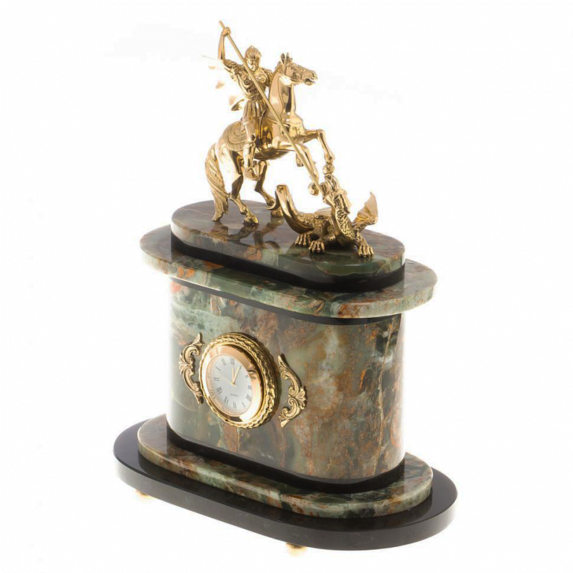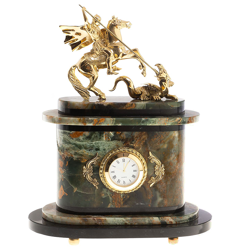 Часы каминные из камня "Георгий Победоносец"офиокальцит