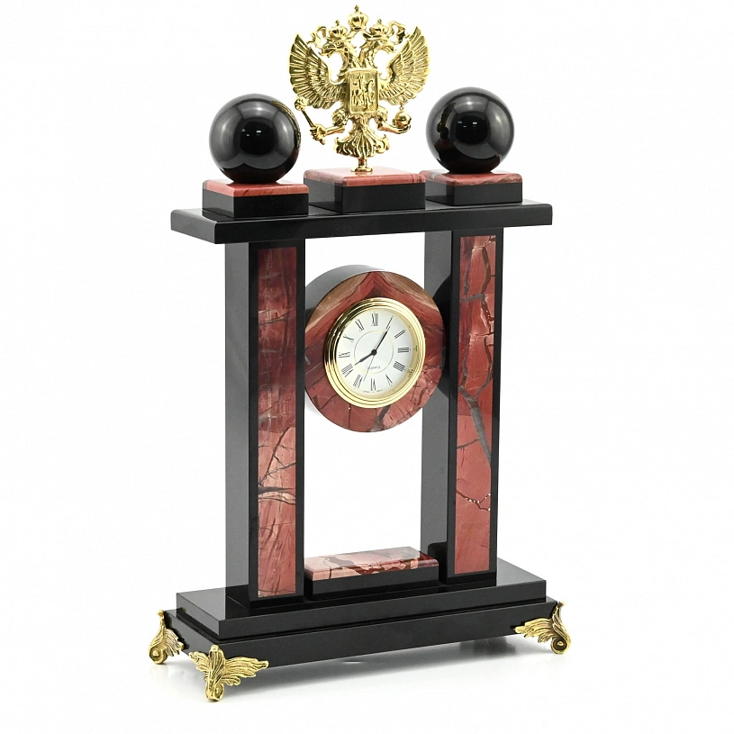Часы каминные из яшмы "Герб России"