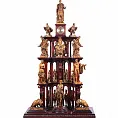 Эти часы — не просто хронометр, а архитектурная ода триумфу, воплощенная в благородном буке. Их трехъярусная конструкция, подобная античному пантеону, возвышается как символ несокрушимой государственности, где каждый уровень раскрывает сакральную связь доблести, мудрости и абсолютной власти.