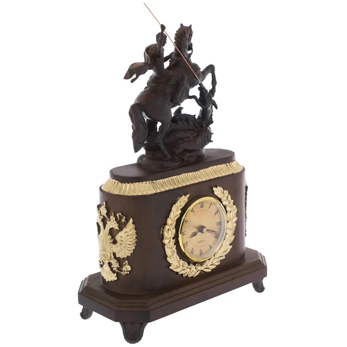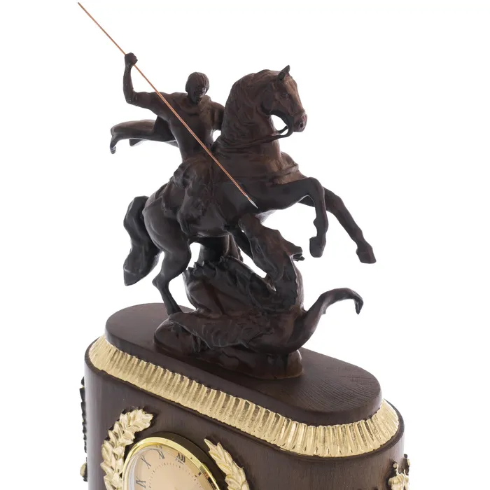 Настольные часы «Георгий Победоносец» — символ доблести и веры в благородном дереве.