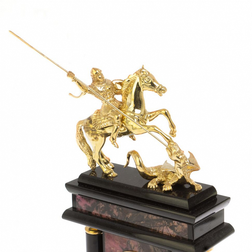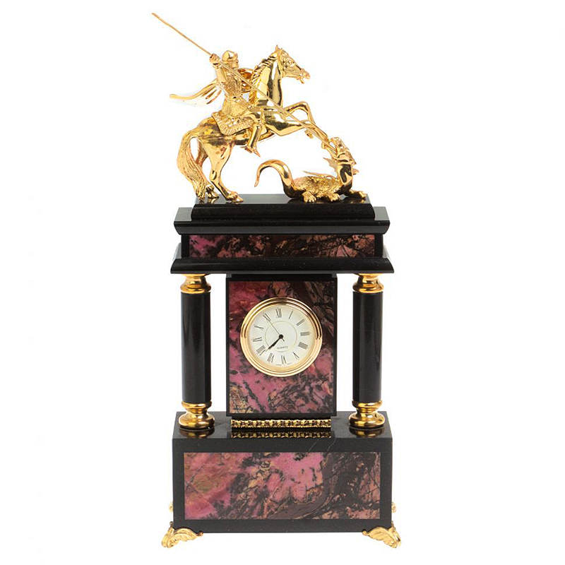 Каминные часы из родонита "Георгий Победоносец"