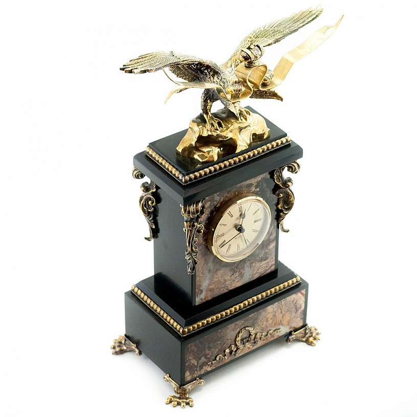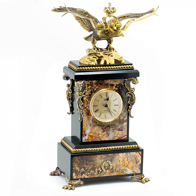 Каминные часы из яшмы и бронзы "Двуглавый орел"
