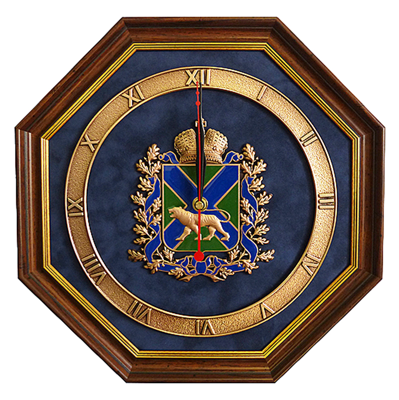 Настенные часы на бархате с эмблемой ведомства имеет строгий стиль и классический дизайн. Они отлично будут смотреться на стене любого кабинета или офиса и станут настоящим символом престижа и уважения к вашей структуре.