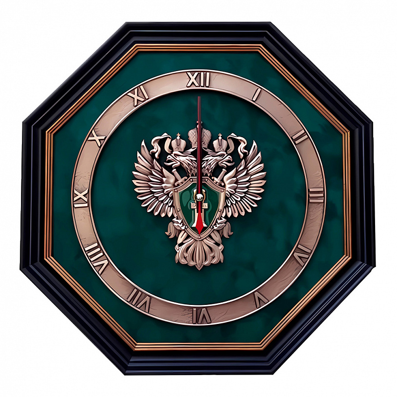 Настенные часы на бархате с эмблемой ведомства имеет строгий стиль и классический дизайн. Они отлично будут смотреться на стене любого кабинета или офиса и станут настоящим символом престижа и уважения к вашей структуре.