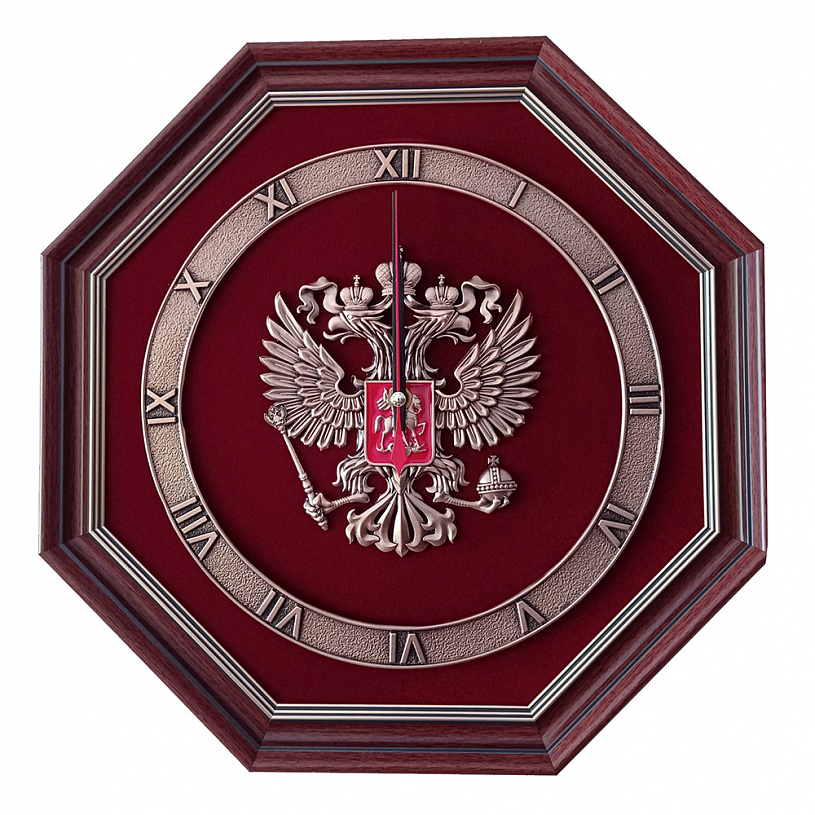 Настенные часы на бархате с эмблемой ведомства имеет строгий стиль и классический дизайн. Они отлично будут смотреться на стене любого кабинета или офиса и станут настоящим символом престижа и уважения к вашей структуре.