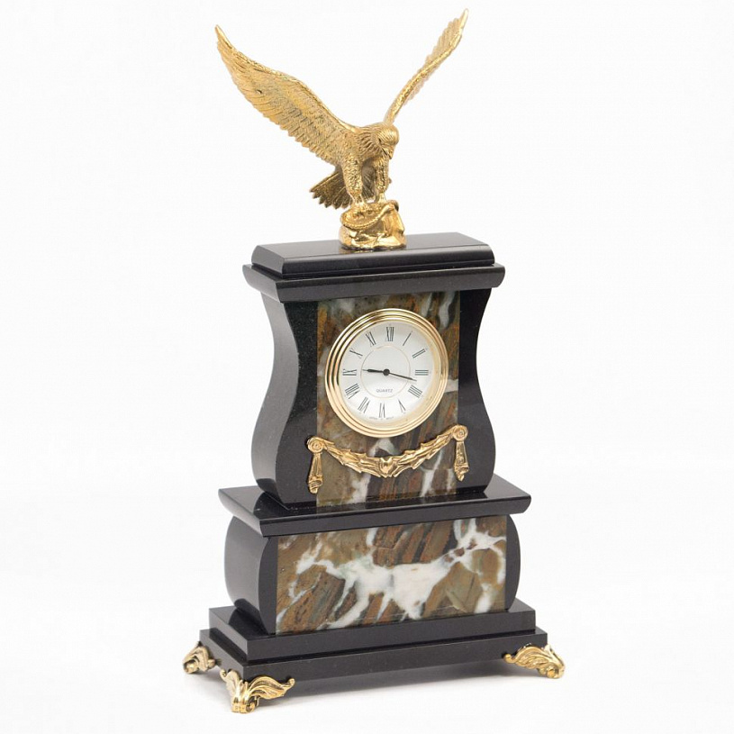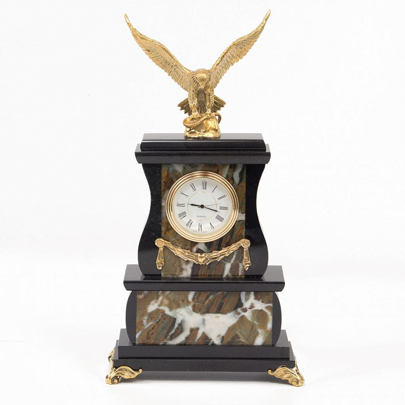 Настольные часы "Орел" камень офиокальцит бронза