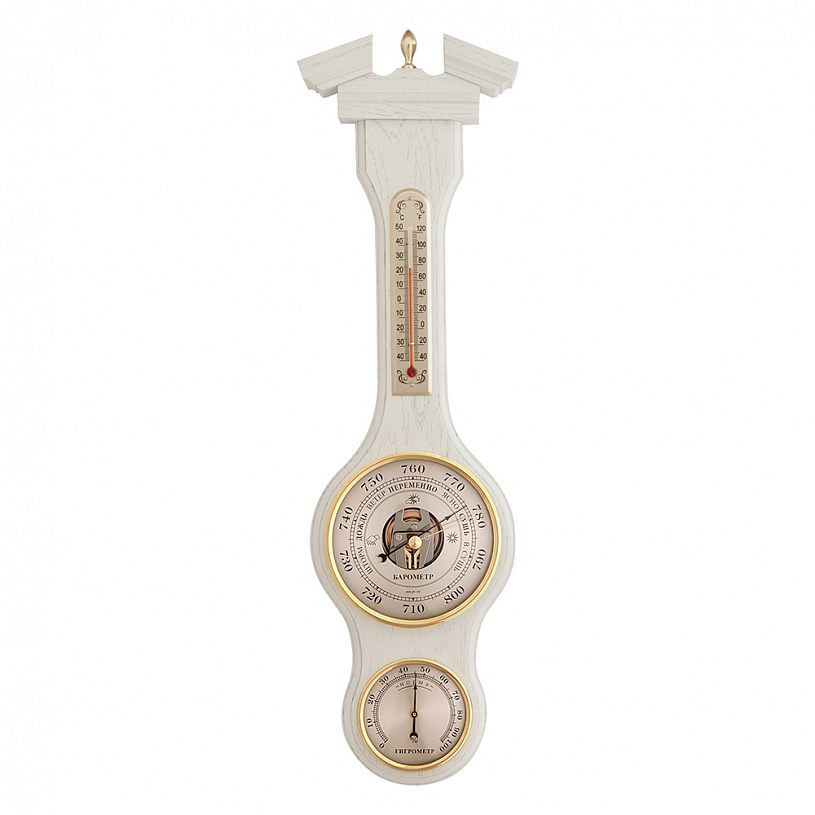 Представляем Метеостанцию "Орех", которая включает в себя барометр, а так же термометр и гигрометр. Также имеется комплектация с часами. Классический дизайн метеостанции позволяет ей прекрасно вписаться практически в любой интерьер, от офисных кабинетов до загородных домов. Мы гарантируем высокое качество изготовления этой метеостанции и предоставление гарантии на 12 месяцев как на механизмы, так и на корпус изделия. Сборка, шлифовка и окраска всех изделий проводится вручную.