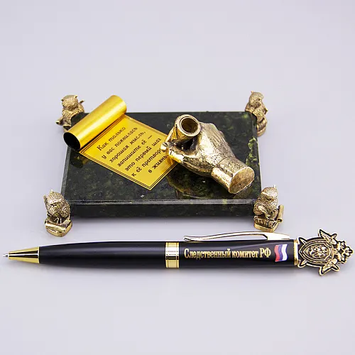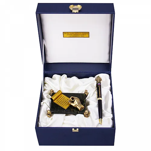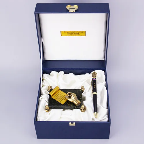 Приобрести стильный предмет, который прослужит ему многие годы и станет уместным дополнением его рабочего места, будет удобно с доставкой в нашем интернет-магазине. Лучшего подарка на юбилей или круглую годовщину верной службы невозможно себе представить. Некоторые из комплектов могут быть изготовлены индивидуально под заказ.