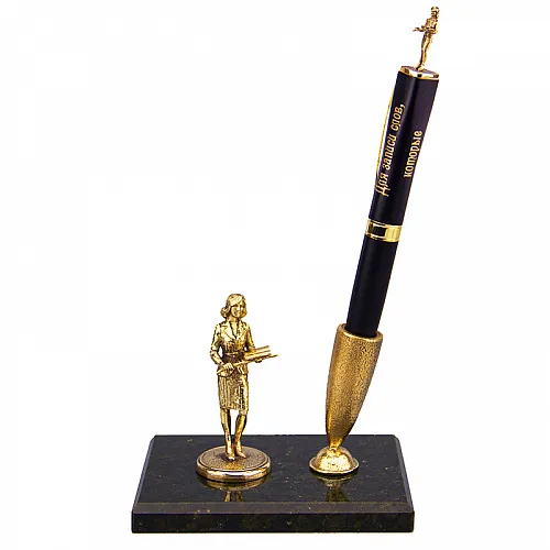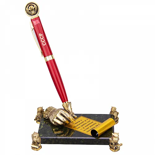 Эффектный письменный набор для руководителя может быть дополнен глобусом и часами, утонченной статуэткой, чернильницей. Многие комплекты украшены патриотической, имперской символикой, они могут быть изготовлены из нефрита, янтаря, обсидиана, лазурита, и так далее, оформлены в стиле гравюры по металлу Златоуст. Мастера Златоуста используют тонкое сочетание токарных работ, рисовки кистями, гравировки иглой на лаке, травления, полировки, никелирования, золочения. Одно из лучших изделий — “Нефрит” Златоуст, включает в свой состав настольные часы и рамочку для фото.