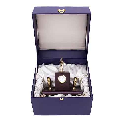 Приобрести стильный предмет, который прослужит ему многие годы и станет уместным дополнением его рабочего места, будет удобно с доставкой в нашем интернет-магазине. Лучшего подарка на юбилей или круглую годовщину верной службы невозможно себе представить. Некоторые из комплектов могут быть изготовлены индивидуально под заказ.