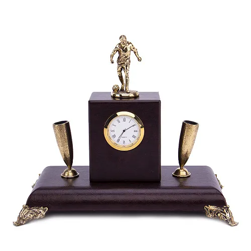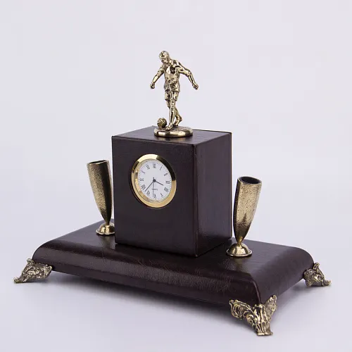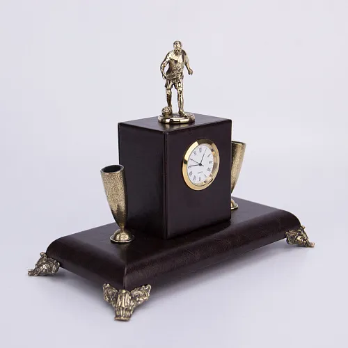 Вы также можете купить комплект, украшенный изящной статуэткой, например Георгия-победоносца, или в строгом деловом стиле. Сувениры, оформленные флагом России, двуглавым орлом и короной империи, добавят месту начальника значимости, подчеркнут мужественность, укрепят дух.