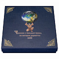 Подарочная коробка — дизайнерская бумага Клесси Каверс темно-синего цвета, ложемент из поролона. Размер — 26,5 х 21,5 х 2,3 см.