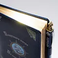 Обложка — экокожа «Небраска» синего цвета. Отстрочка по периметру. Петля для крепления ручки. Цветное изображение методом УФ-печати.