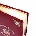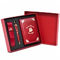 Подарочная коробка — дизайнерская бумага Клесси Каверс красного цвета, ложемент из поролона. Размер — 26,5 х 21,5 х 2,3 см. Нанесение изображения методом УФ-печати на крышку. Возможен заказ другого изображения.